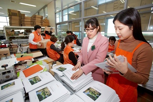 | ▲ 한화그룹이 2000년 이후 17년째 제공하고 있는 '사랑의 점자달력' 제작 현장. ⓒ뉴시스 | ||