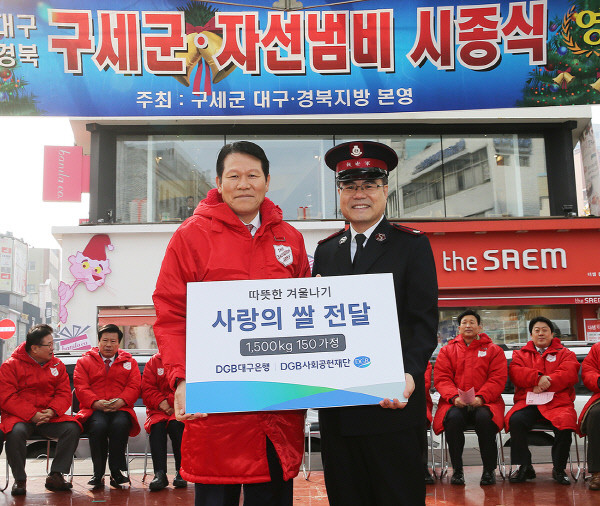 DGB금융그룹은 연말연시 어려운 이웃들이 따뜻한 겨울을 보낼 수 있도록 다양한 연말 봉사 활동을 진행하고 있다. 사랑의 연탄 12만장, 4400Kg의 김장 나눔 행사 등을 진행했으며 연말 성금 전달 등 지속적인 사회공헌활동을 진행할 예정이다.