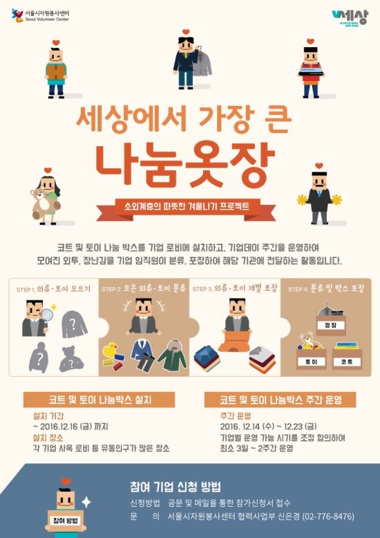 안승화 센터장은 "겨울이 되면 더욱 추위를 느끼는 소외계층에게 따뜻함을 전하고, 집에서 잠자는 코트와 장난감을 나누는 일상 속 실천 활동을 통해 소외계층을 돌아보는 계기가 될 것"이라고 했다.