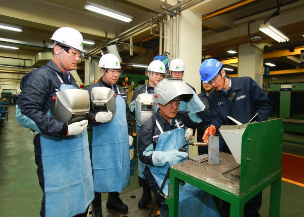 신임 임원들은 교육 첫날인 13일 현대중공업 기술교육원에서 하루 동안 용접과 가스 절단 등 생산 기술을 배우고 안전 체험교육을 받았다.