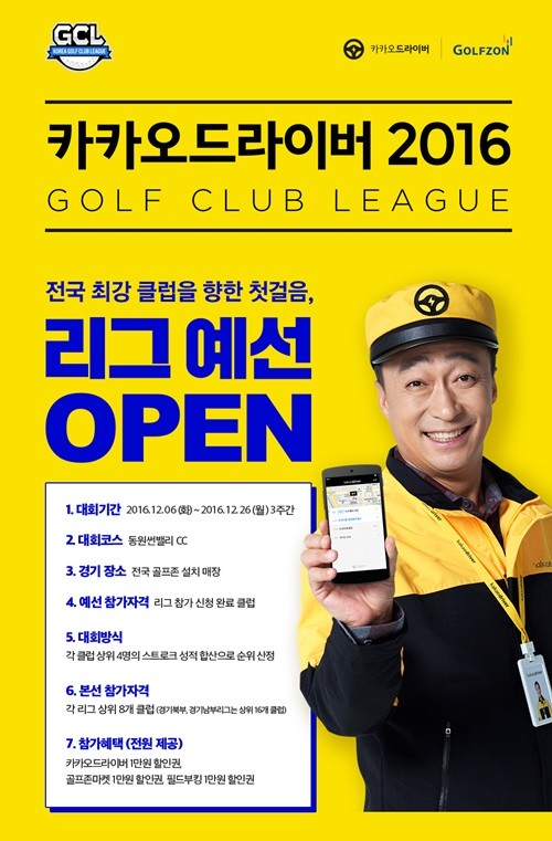 1억원의 시상 규모로 열리는 ‘카카오드라이버 2016 전국골프클럽리그(GCL)’는 카카오드라이버 주최, 대한골프협회 주관, 한국캘러웨이골프, 골프존마켓, 골프존카운티 후원으로 열리며, GTD코리아, 1872더치커피 등이 협찬한다. 전국결선은 SBS 골프 채널을 통해 녹화 중계될 예정이다.