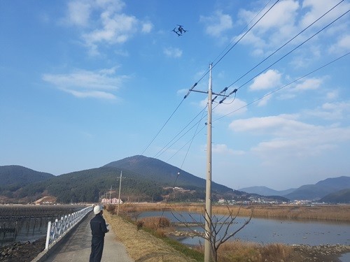 | ▲ 15일 한국전력 경남지역본부 거제지사가 드론(무인기)으로 배전설비를 점검을 하고 있다. (사진=한국전력 거제지사 제공) | ||