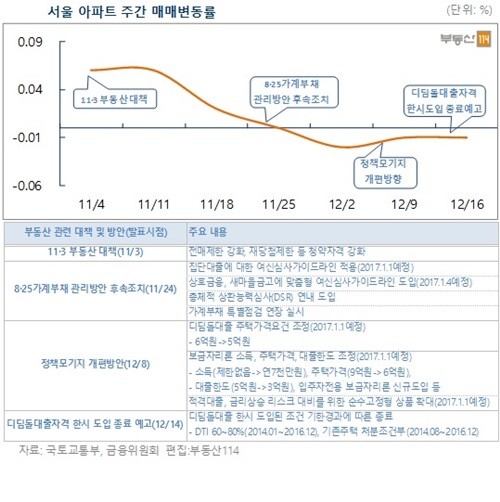 16일 부동산114에 따르면 12월 둘째 주 서울 아파트값은 0.01% 하락했다.