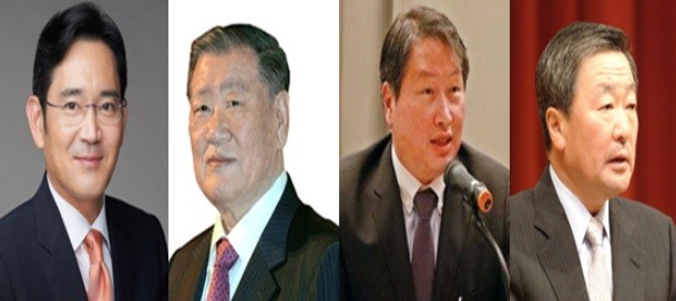 | ▲ 이재용 삼성전자 부회장, 정몽구 현대차그룹 회장, 최태원 SK그룹 회장, 구본문 LG그룹 회장. (사진 왼쪽부터) | ||