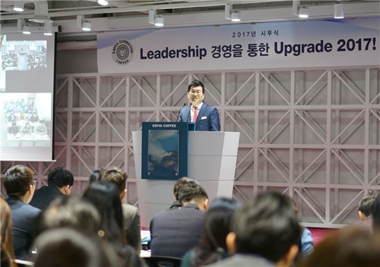 문 회장은 3일 강남 본사에서 열린 시무식에서 "'맛있는 커피를 합리적인 가격에 제공한다'는 이디야의 핵심가치 강화를 위해 제품 품질과 내부 임직원들의 업무 역량 업그레이드해야 한다"고 밝혔다.