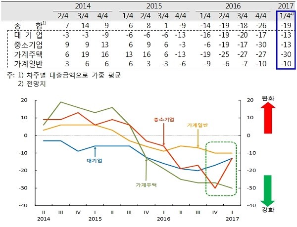 | ▲ 국내은행의 차주별 대출태도지수 (제공=한국은행) | ||