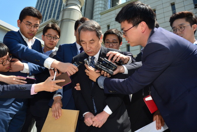 | ▲ 인체에 유해한 가습기살균제를 제조·판매한 혐의로 구속영장이 청구된 신현우 옥시 전 대표가 13일 오후 서울 서초구 서울중앙지방법원에서 영장실질심사를 받고 법원을 나서고 있다. @뉴시스 | ||