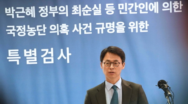 이규철 특검보는 19일 오전 10시 긴급 입장 발표를 통해 "법원의 이 부회장에 대한 구속영장 기각 결정은 특검과 피의사실에 대한 법적 평가에 있어 견해 차이가 있다고 판단된다"고 밝혔다.