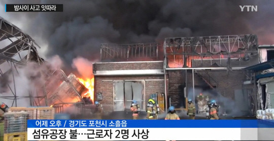 | ▲ 포천 섬유공장서 불. 사진=YTN 캡처 | ||