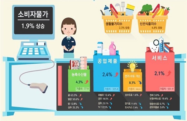 지난해 12월 넉 달 연속 1%대를 기록했던 소비자물가 상승률은 올해 1월 농축수산물을 중심으로 2,0% 상승한 데 이어 지난달에도 1.9% 상승하면서 높은 상승률을 나타냈다.