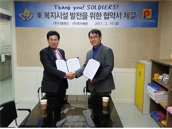 [일요주간=홍성완 기자] (주)디벨랜드는 지난 2월 (주)피자헤븐과 상호 신뢰를 통한 군 관련사업 협력 업무협약을 체결했다고 3일 밝혔다.