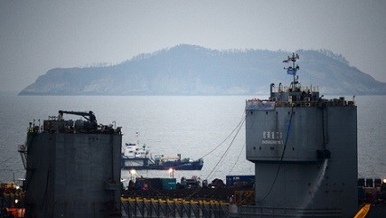 23일 해양수산부는 새벽 3시 45분께 스태빌라이저로 추정되는 세월호 선체 일부가 수면에서 육안으로 모습을 보이기 시작했다고 전했다.