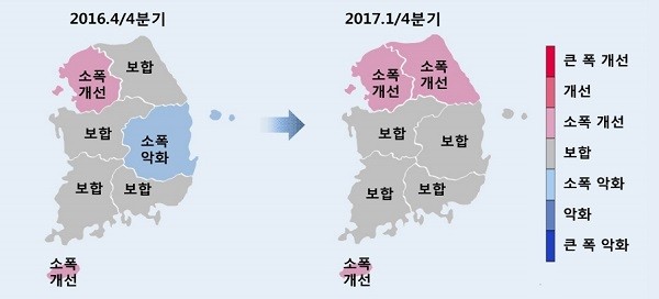 지난해 4분기와 비교하면 ‘소폭 악화’였던 대경권은 보합으로 전환됐고, ‘소폭 개선’은 강원권이 유일했다.