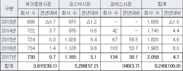 또한 올해 정기주총 개최 회사는 전년에 비해 93사(4.7%) 증가했으며 이는 대체로 코스닥시장과 코넥스시장 상장법인 증가가 영향을 미쳤다.