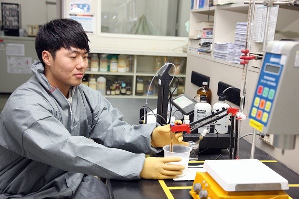 이에 중앙연구소 고온수지팀과 실리콘연구팀에 자문을 구한 결과, 유리에 균일하게 코팅이 되어 유리 장섬유를 적절히 보호하면서도 플라스틱과 잘 혼합될 수 있는 필름 형성제를 찾을 수 있었고 이에 따른 유기물 배합 개발에 성공할 수 있었다.