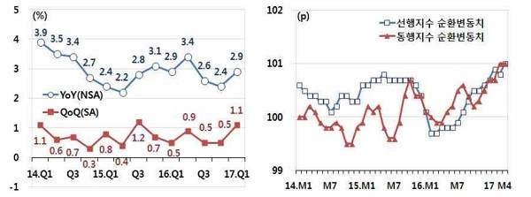 전반적인 경제 방향성을 나타내는 동행 및 선행 지수는 모두 상승 추세를 보였지만 2분기 들어 설비투자 회복세는 약화될 것으로 전망했다.