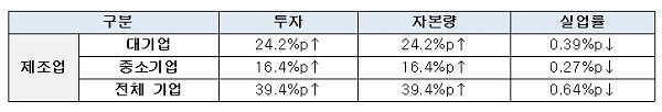 중소기업 ‘투자·자본량’ 16.4%p↑, ‘실업률’ 0.27%p↓