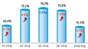 특히 15~64세 전체 고용률은 67.0%로 지난해 같은 달 대비 0.7%p 상승했고, 청년층(15∼29세) 취업자는 3만4천명으로 고용률은 0.7%p 올랐다.
