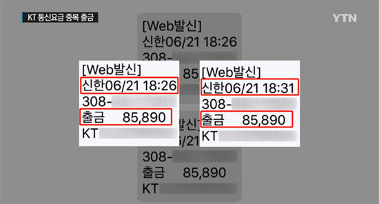 한편 전날 SNS와 온라인 커뮤니티에는 피해 고객들의 ‘KT 요금이 이중으로 인출됐다’는 내용의 글이 잇따라 올라왔으며, 포털사이트 실시간 검색어에 KT가 오르내리기도 했다.