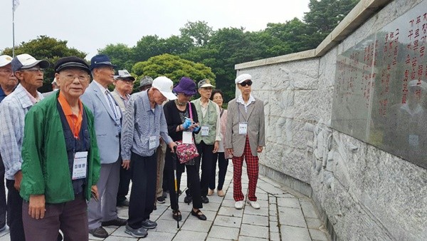 | ▲ 효성이 지원한 ‘최고의 여행’ 프로젝트를 통해 6·25 참전유공자 및 보훈가족 30명이 제주 충혼묘지를 방문했다. | ||