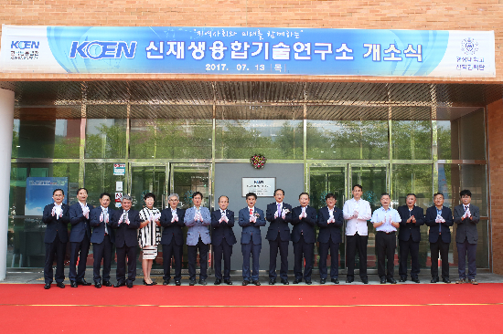 한국남동발전(사장 장재원)은 13일 경남 진주시 칠암동 국립경상대학교 BNIT R&D 센터 강당에서 장재원 남동발전 사장, 이상경 경상대총장, 조유섭 경남 T/P 정책기획단장 등 관계자자 70여명이 참석한 가운데 ‘KOEN 신재생융합기술연구소(이하 기술연구소)’ 개소식 행사를 가졌다고 밝혔다.