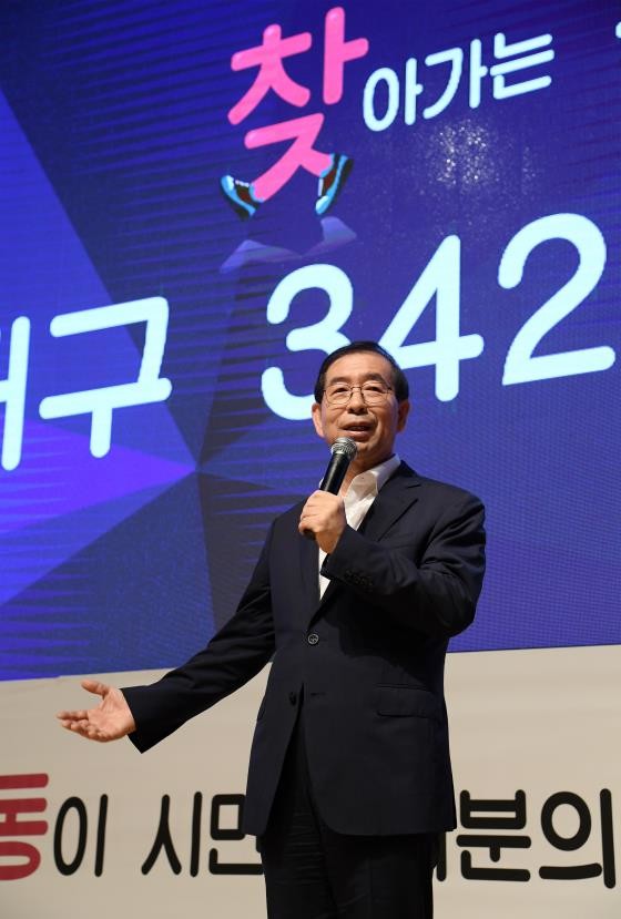 [일요주간=이수근 기자] 박원순 서울시시장은 18일 오후 찾동 동주민센터 3단계 출범식에 참석, 다채로운 모습으로 시민들과 만났다.