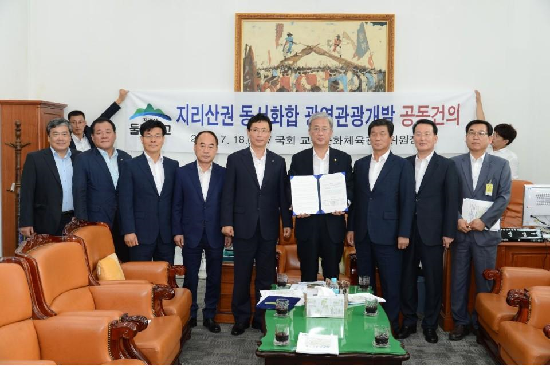 공동건의문의 주요내용은 △지리산권관광개발조합의 조직 기능 강화와 지속적 사업성과를 위한 예산지원 △지리산 권역 관광수요 대응 및 발전지원 등을 위한 특별법 제정 △영호남 소통과 화합 구심점을 위한 광역권 관광인프라 구축 △유네스코 세계자연유산등재 등 지리산 브랜드 가치 확대를 위한 지원 △문화관광과 농․특산물 공동마케팅을 통한 소득과 일자리 창출 지원 등이다.