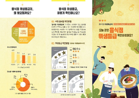 한편 음식점 위생등급제는 외식 이용률이 지속적으로 증가하면서 음식점 위생수준이 더 중요해짐에 따라 식품의약품안전처에서 5월 19일부터 시행하고 있다.