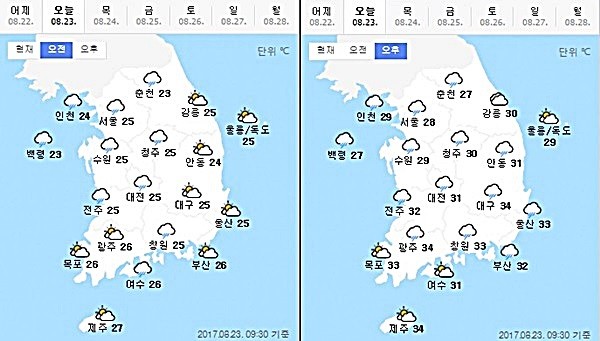 [일요주간=노현주 기자] 처서인 23일, 전국에 비 오는 날씨가 이어진다.