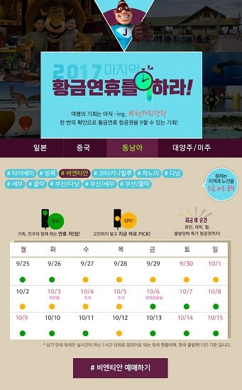 구체적인 여행 일정을 입력하지 않고도 여행지만 선택하면 기간 내 예매 가능 여부를 간단히 확인할 수 있다.