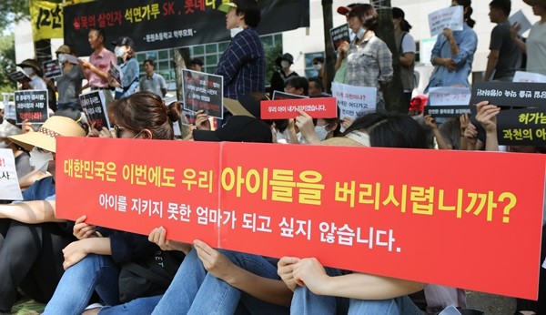한편 이번 사태는 인근에 위치한 문원초등학교 학부모들이 석면조사 공개를 요구하면서 빚어졌다. 문원초등학교 학부모들과 주민들은 안전한 석면철거를 요구하며 석면조사 및 철거계획에 대해 SK건설, 롯데건설에 정보 공개를 요구했지만 이들은 학부모들의 요구를 철저히 무시했다.