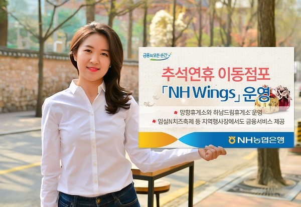 농협은행의 이동점포인 ‘NH Wings’는 금융단말기와 자동화기기를 탑재한 차량으로 휴게소 및 축제현장 등을 돌아다니며 신권 교환은 물론 현금입출금, 통장정리, 계좌이체 등 각종 금융서비스를 제공하고 있다.