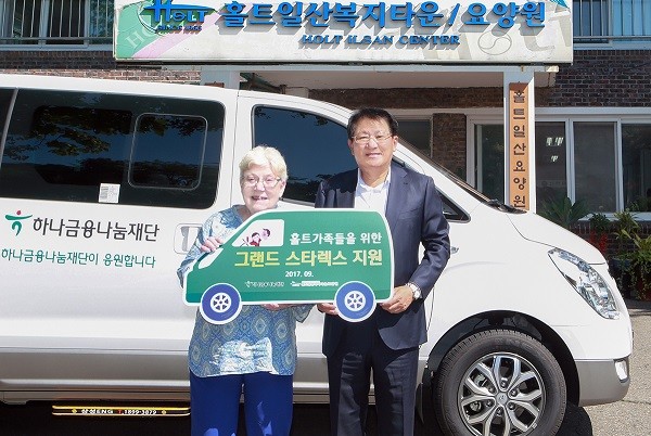 [일요주간=조무정 기자] 하나금융나눔재단(이사장 김한조)은 장애인의 안전과 편의제공을 위해 홀트일산복지타운에 장애인용 이동 차량과 대형 세탁기계를 기증했다고 20일 밝혔다 .