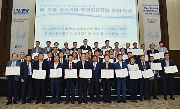 효성은 21일 경북 경주에 위치한 경주화백컨벤션센터에서 K-water(한국수자원공사), 중소기업 39개사와 물산업 중소기업 해외진출지원 MOU’를 체결했다.