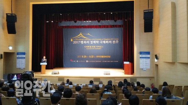 [일요주간=이수전 센터장] 2017 행복의 경제학 국제회의 전주 행사가 21일 ‘지역화를 위한 거버넌스’라는 주제로 전주한국전통문화전당에서 개최되었다. 본 회의에 참석한 김승수 전주시장은 지방경제 활성화를 위한 역할론을 통해 한층 더 발전 할 수 있도록 시민과 더불어 함께 만들어가는 지방 거버넌스를 만들도록 하겠다고 하였으며, 특히 전주 동초등학교 학생들의 멋진 개막 축하공연은 오랜 기간 아이들의 꿈과 바람이 이루어낸 자랑스럽고 멋진 성공 스토리로 동네를 떠나고 싶다던 아이들이 스스로 행복한 마을 만들기에 중심이 되고 있음을 크게 칭찬하였다.