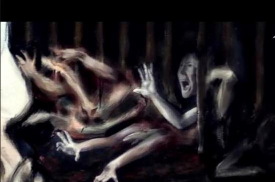 ▽ (흑승지옥) 살생과 도둑질한 죄인이 가게 된다는 지옥으로, 뜨거운 쇠사슬로 묶어놓고 톱으로 절단되는