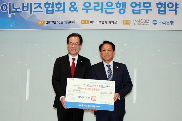우리은행은 이노비즈협회가 추천한 회원사의 대출을 지원하고 수수료가 우대되는 이노비즈협회 전용 통장을 제공한다. 이노비즈협회는 기술 우위를 바탕으로 경쟁력을 확보한 기술혁신형 중소기업임을 인증하는 이노비즈인증제도의 관리기관으로서 회원사를 대상으로 관련 대출과 전용 통장을 우리은행과 공동 마케팅한다.