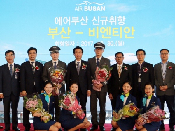 한편 에어부산은 이날 오전 김해공항 국제선 터미널에서 에어부산 임직원 및 깜수와이 께오달라봉 주한 라오스대사, 조현영 한국공항공사 부산지역 본부장 등이 참석한 가운데 신규 취항을 기념한 행사를 했다.