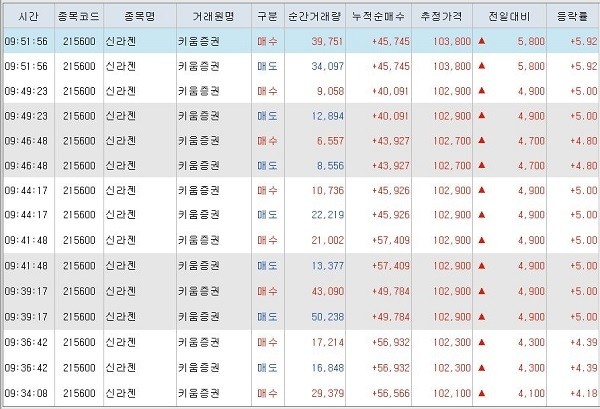 신라젠의 경우 연일, 대규모의 통정거래(자전거래)가 일어나고 있다. 통상 시세조종을 노린 통정거래의 경우 한두 개의 증권사가 동원된다. 하지만 신라젠의 경우 연일 4~5개의 특정 증권사 계좌를 이용, 통정거래가 발생하고 있다.