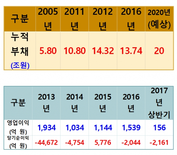 ◈끝없는 낙하산 인사로 인한 적폐… 천문학적 숫자의 적자로!