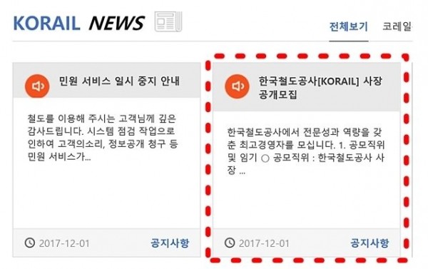 비어 있는 코레일 사장 자리를 놓고 최근 몇 언론을 통해 『청와대 낙하산 인사설』이 제기됐다. 적폐청산을 공약으로 내건 문재인 정부는 과연 어떤 선택을 할 것인가. 국민들 시선이 집중되고 있다.