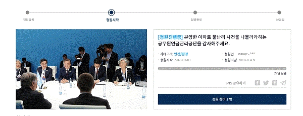 청와대 국민청원 게시판에는 지난 7일 ’분양한 아파트 물난리 사건을 나 몰라라 하는 공무원연금관리공단을 감사해주세요‘라는 제목의 청원 글이 게재됐다.