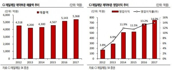 이 연구원은 “CJ 헬스케어 인수를 통해 기보유한 제약 CMO(수탁)와 시너지가 예상된다. 또한 H&B(건강기능식품)과 제약 부문 보유로 포트폴리오 다변화가 기대된다”고 전했다.