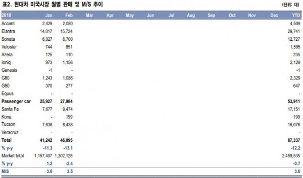 그러면서 "따라서 2018년 출시예정인 신차 라인업(코나/스팅어/싼타페), 특히 하반기 출시 예정인 싼타페(최대 수요차급인 중형 SUV)의 판매 성과가 미국시장에서의 경쟁력 회복의 주요 포인트다"라고 분석했다.