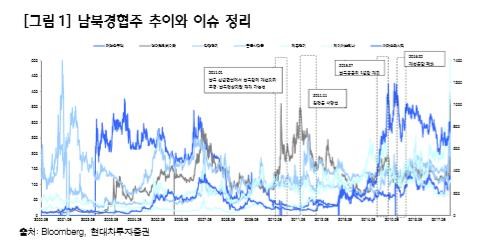 이어 “북한 이슈에 남북 경협주가 크게 반응했다”며 “과거 경협주는 북한 이슈에 따라 주가가 움직이는 모습을 보였고 27일에도 남북경협주가 전반적으로 높은 주가상승률을 보였다”고 진단했다.