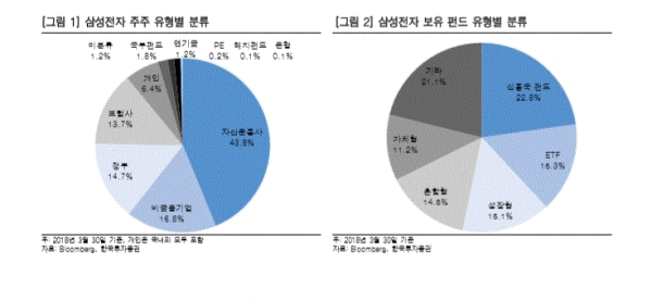 또 “실제로 대표적인 신흥국 지수인 MSCI에서 삼성전자가 차지하는 비중은 3.8%로 텐센트와 알리바바에 이어 3위다. 이에 따라 코스피 200을 추적하는 국내 펀드군 뿐만 아니라 글로벌 자산운용사의 상품에도 꽤 높은 비중으로 편입되어 있다”고 말했다.