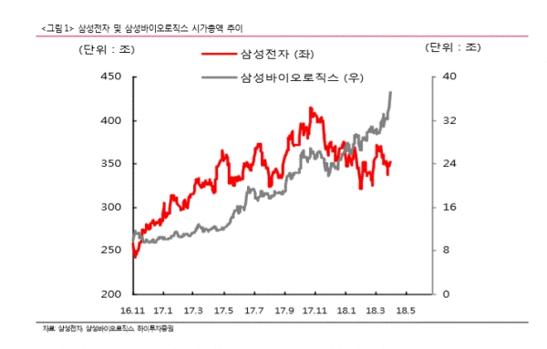 이상헌 연구원은 “우선 생각할 수 있는 시나리오는 삼성물산이 삼성바이오로직스를 43.4%를 소유하고 있기 때문에 이 삼성바이오로직스 주식을 삼성전자에 팔고 삼성생명이 보유한 삼성전자 주식을 매입하는 것이다”며 “더욱이 공정거래위원회에서는 삼성그룹 지배구조와 관련 해 삼성생명이 고객의 돈으로 삼성전자를 지배하는 금산분리 문제가 가장 중요한 문제점으로 파악하고 있을 뿐만 아니라 취득가를 시가로 바꾸는 보험업법도 추진 중 에 있기 때문에 삼성생명이 삼성전자 지분을 매각할 수 밖에 없는 상황에 봉착해 있다. 따라서 조만간에 어떤 식으로든 가시화 될 것으로 예상된다”고 밝혔다.