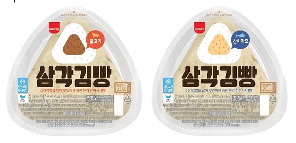 ‘삼각김빵’은 불고기맛, 참치마요맛 두 가지로 출시한다. 오는 19일 출시되는 ‘삼각김빵 불고기’는 갈비 양념을 한 불고기를 가득 넣어 달콤짭짤하며, 26일 출시 예정인 ‘삼각김빵 참치마요’는 참치와 마요네즈를 버무린 내용물을 넣어 고소한 맛이 특징이다. 권장소비자가격은 1500원으로 전국 편의점 냉장코너에서 구입할 수 있다.