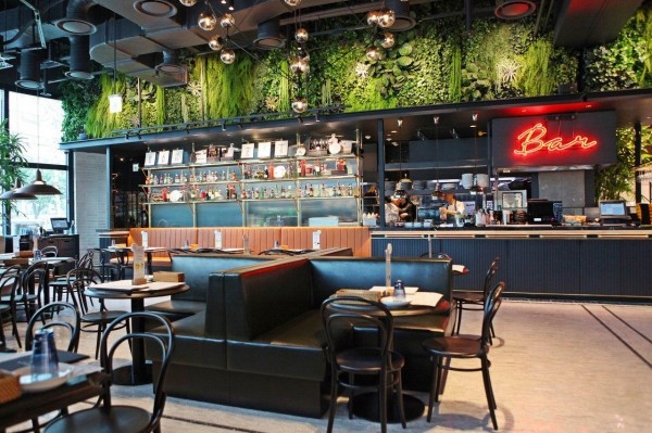 현대백화점 1층에 90석 규모로 자리잡은 천호점은 오픈 키친 상부와 매장 곳곳을 다양한 식물로 구성해 ‘느긋한 그린하우스에서의 식사’라는 공간 콘셉트를 강조했다.