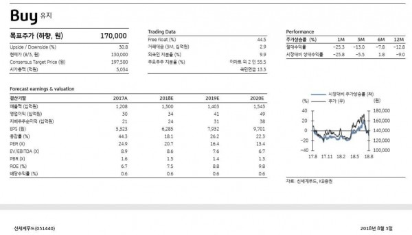 이어 “실망스러운 신세계푸드의 2분기 실적 외에 근로시간 단축, 최저임금 인상, 외식 경기 위축 등의 불확실한 영업환경이 당분간 투자심리를 제한할 수 있다“고 분석했다.